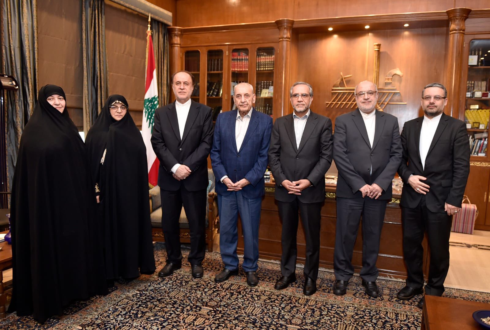 عرض رئيس مجلس النواب نبيه بري في مقر الرئاسة الثانية في عين التينة مع نائب رئيس مجلس الشورى في الجمهورية الإسلامية الإيرانية حميد رضا حاجي بابائي والوفد البرلماني المرافق، بحضور السفير الإيراني لدى لبنان مجتبى أماني، الأوضاع العامة في لبنان والمنطقة والعلاقات الثنائية لا سيما بين برلماني البلدين.