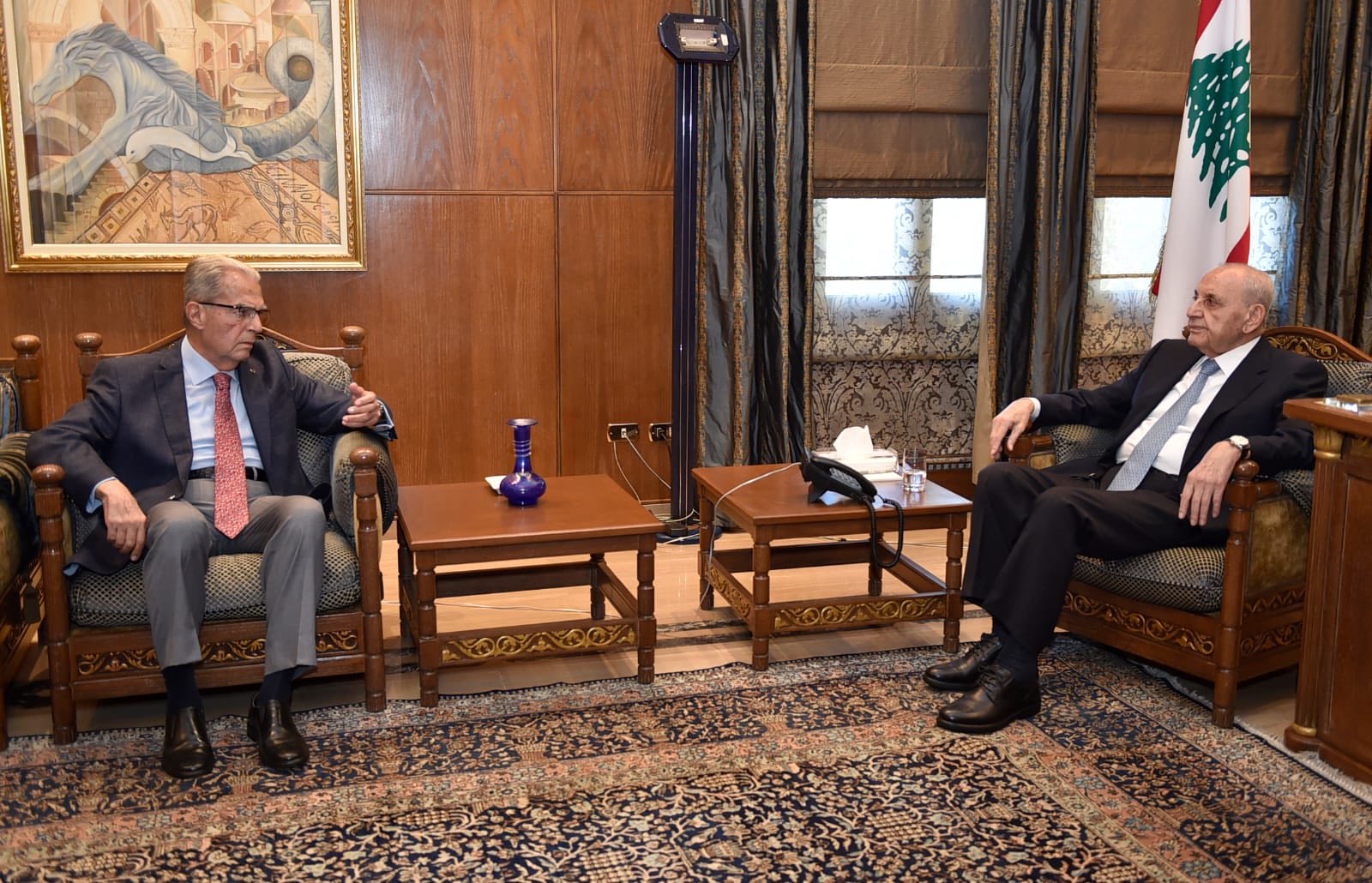 إستقبل رئيس مجلس النواب نبيه بري في مقر الرئاسة الثانية في عين التينة، الوزير السابق وديع الخازن، حيث تم البحث في آخر التطورات والمستجدات السياسية والميدانية واستحقاق الانتخابات النيابية.