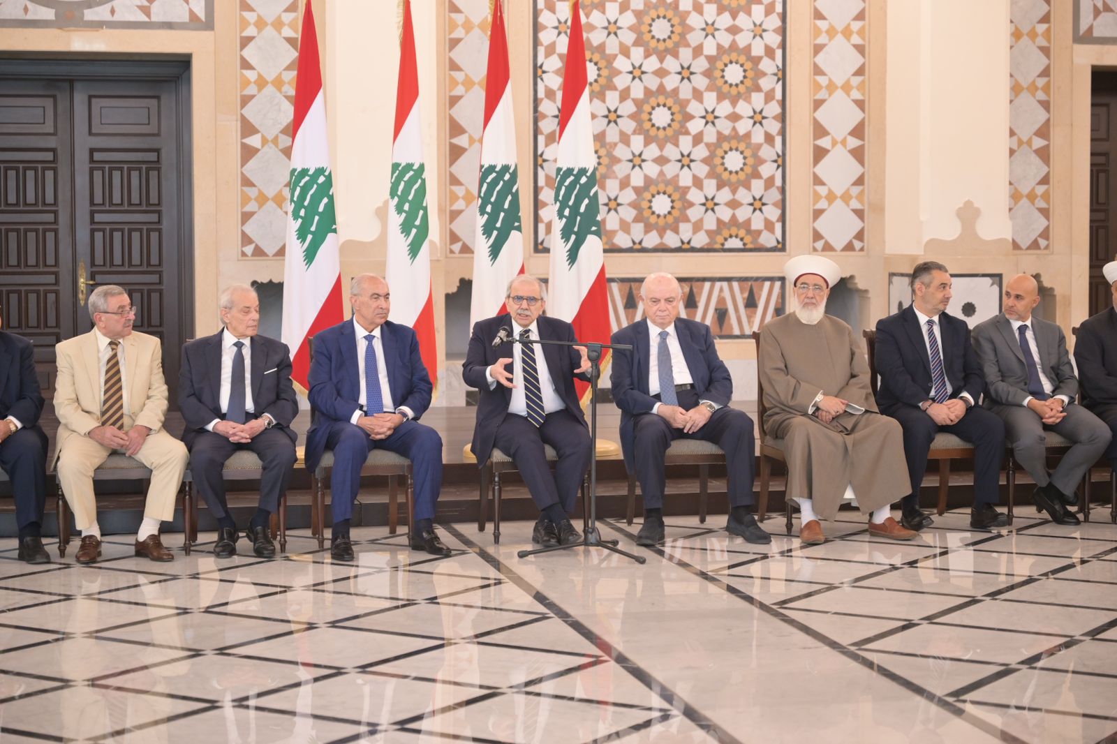 الرئيس سلام رحب بالوفد وقال: نحن مصممون على تنفيذ ما ورد في البيان الحكومي، وتحديداً في ما خص موضوع حصر السلاح، وذلك بالتعاون مع الجميع وباشراف الجيش اللبناني والقوى الامنية، مشدداً على ضرورة احتواء السلاح وانتشار الجيش اللباني جنوباً وعلى كامل الاراضي اللبنانية.
