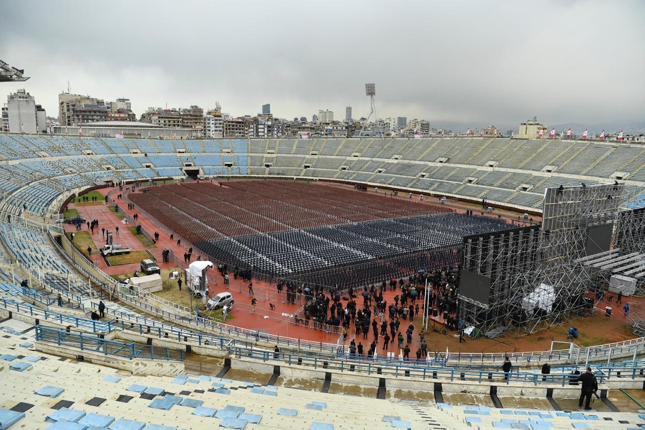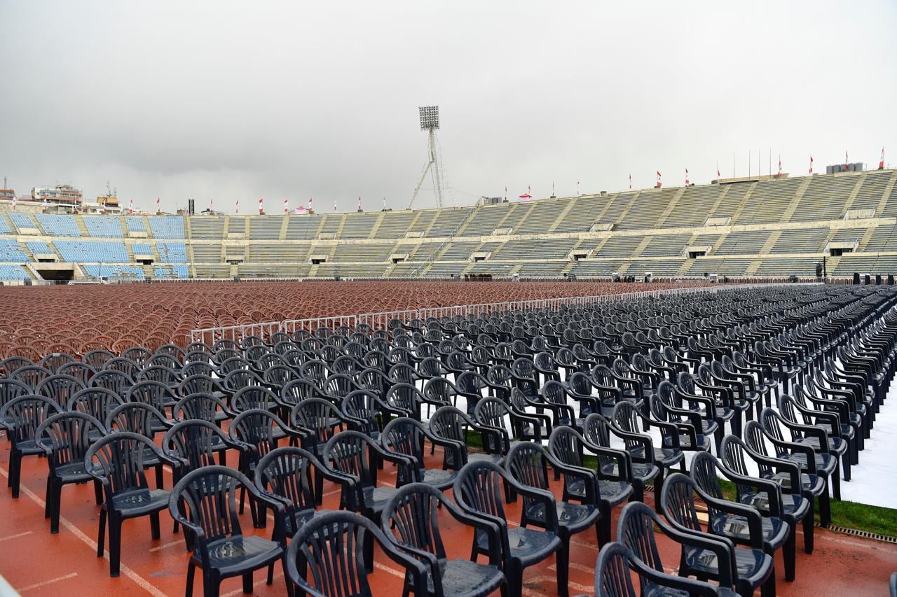 بالصور... التحضيرات شبه مكتملة والمدينة الرياضية تتحضّر للتشيع الكبير غداً