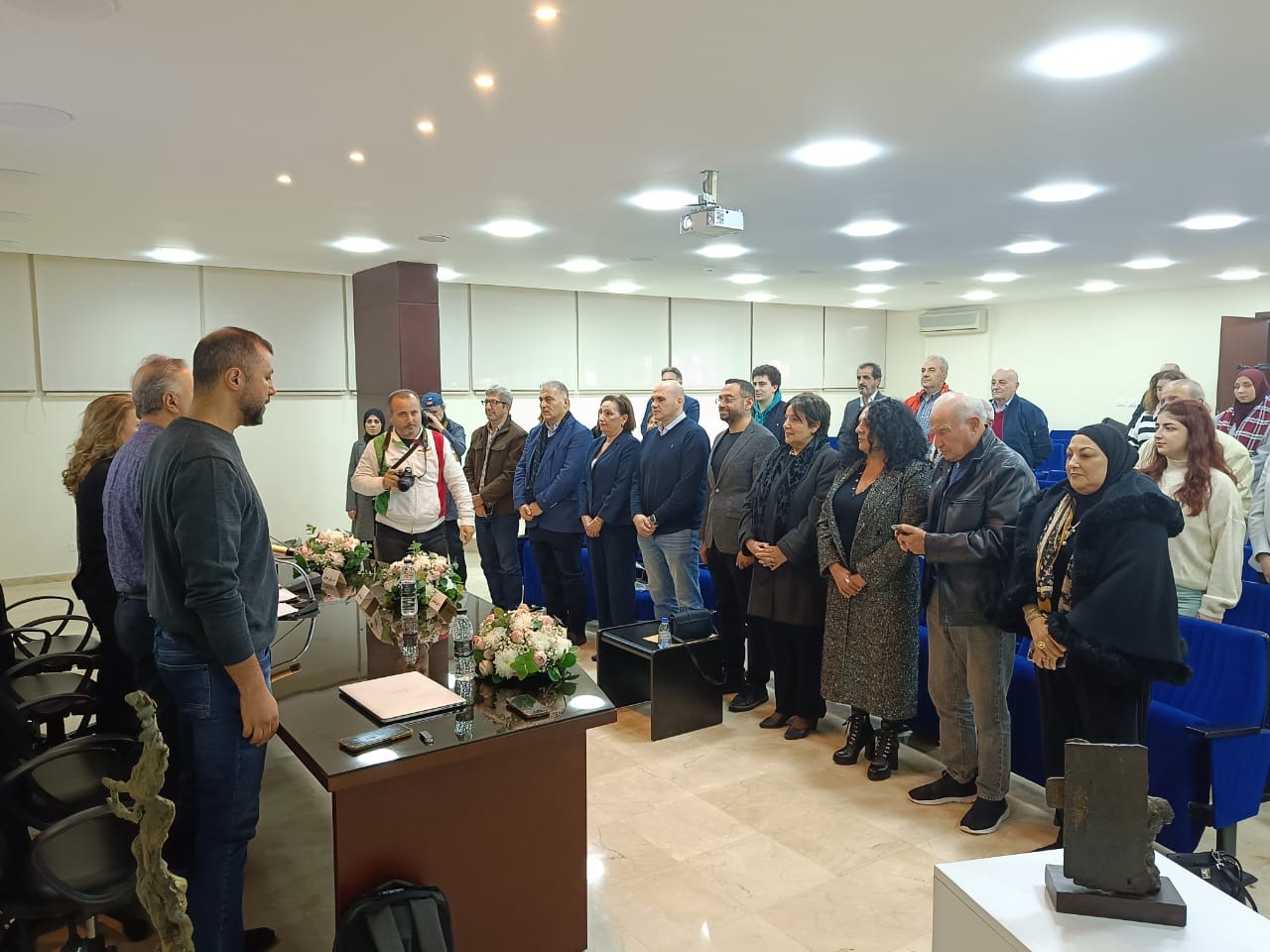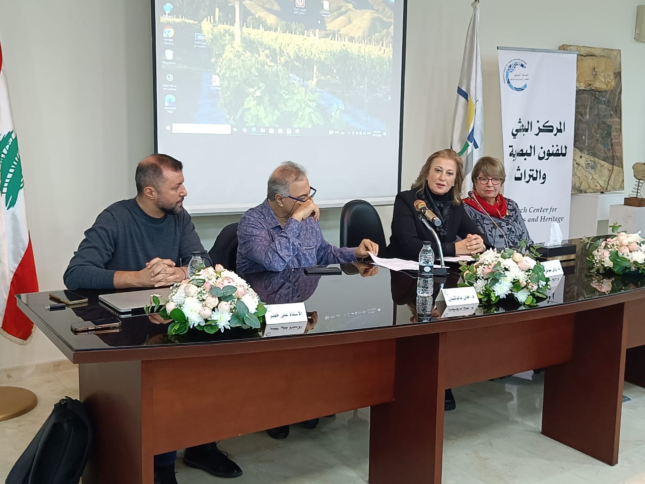 افتتح اللقاء بكلمة ترحيبية لرئيسة المركز د. رولا عوض، التي أكدت على أهمية تأسيس المركز كمساحة بحثية وتفاعلية تجمع بين الفنون، التراث، والهوية، مشددة على ضرورة التشابك المعرفي والتعاون مع البلديات، الجامعات، المتاحف وصالات العرض، محليًا وإقليميًا.