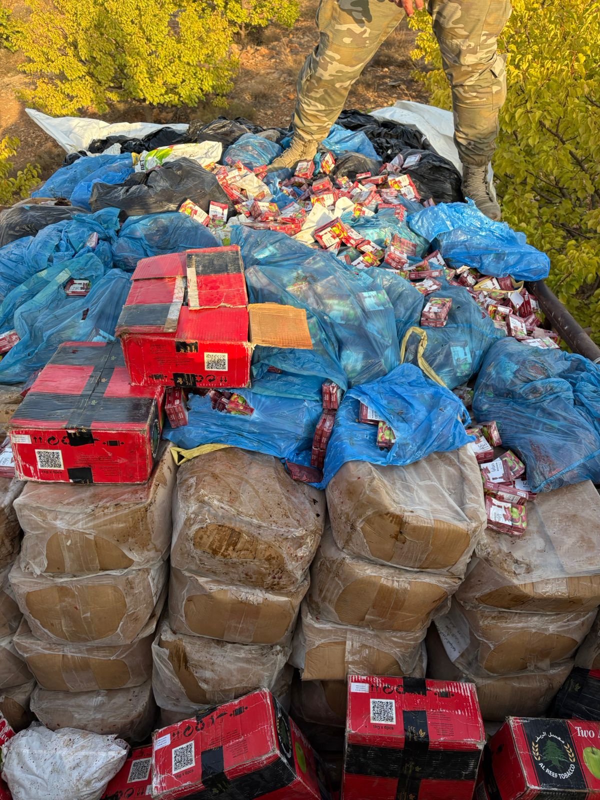 وخلال المداهمة، جرى مصادرة المعدات والمواد الأولية المستخدمة في عملية التصنيع، إضافة إلى كميات كبيرة من المعسل المزور تُقَدّر بحوالي سبعة أطنان.