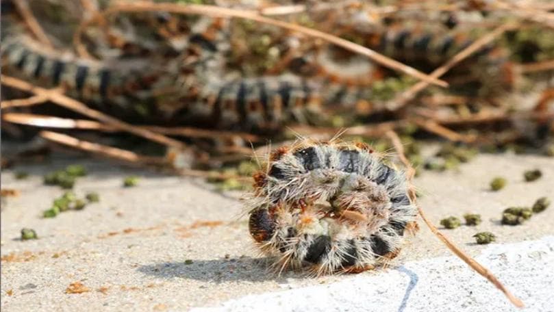 • في نهاية الشتاء، تحديدًا بين منتصف شباط وأواخر نيسان، تغادر اليرقات الأعشاش وتسير على شكل سلاسل باتجاه أطراف الغابات بحثًا عن الضوء والدفء، مما يزيد من احتمالية انتشارها في المناطق السكنية، حيث تشكل خطرًا على الصحة العامة بسبب تسببها بحساسيات جلدية وتنفسية.