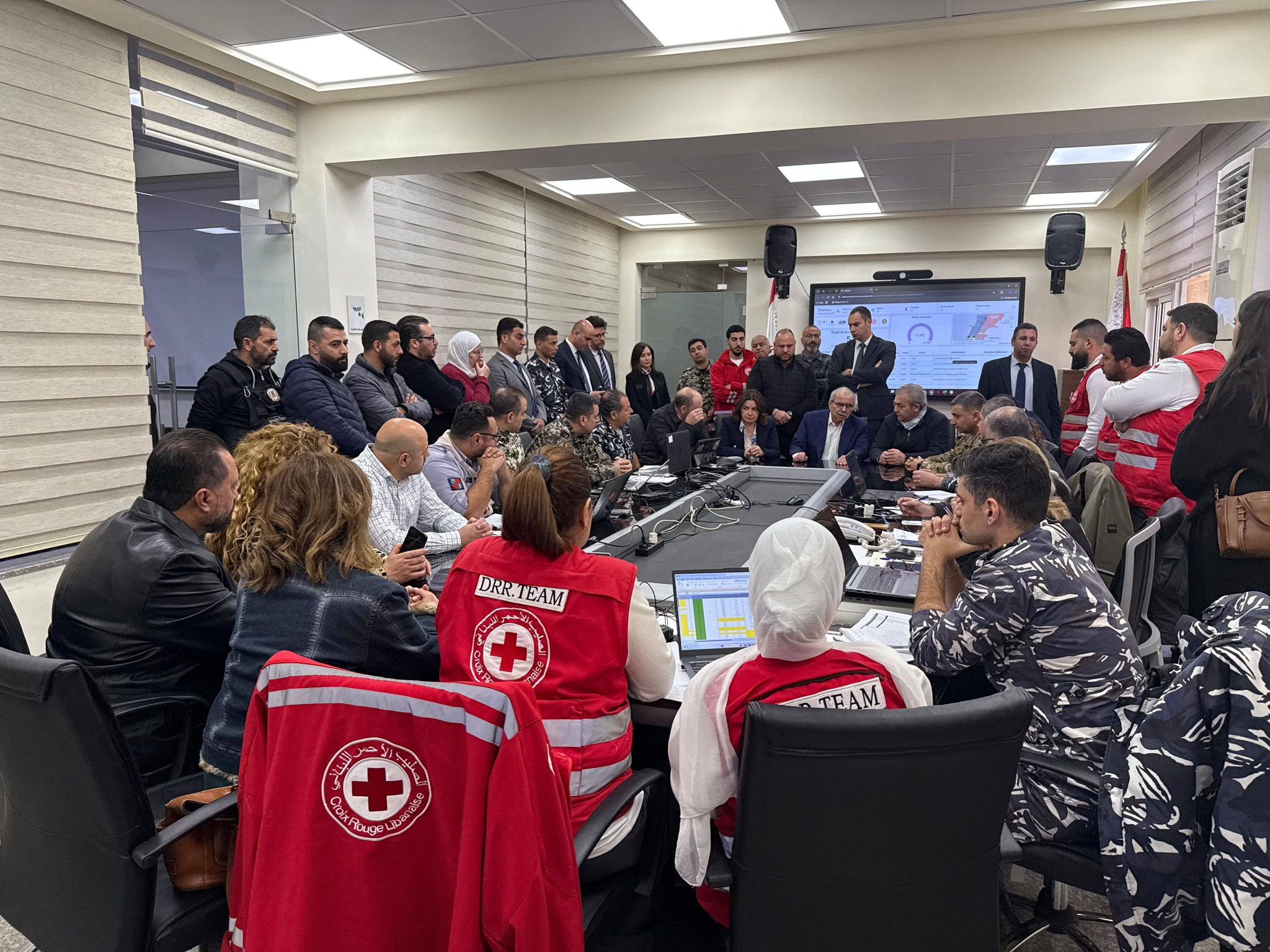 وتفقد وزير الداخلية والبلديات أحمد الحجار غرفة إدارة الكوارث في محافظة جبل لبنان للاطلاع على التدابير المتخذة لتسهيل أمور الأهالي النازحين إلى المنطقة جراء التطورات الأمنية الأخيرة. وأجرى الحجار اتصالاً عبر تقنية الفيديو مع القائمقامين في مختلف مناطق المحافظة عبر غرفة العمليات للوقوف عند حاجات مراكز الإيواء ومتابعة إجراءات الدعم اللوجستي والإنساني.