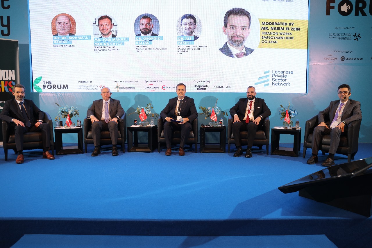 كذلك، نُظمت حلقة نقاش تحت عنوان "العمل والنمو والانتقال الى الاقتصاد المنظّم: تحدّي الـ100 ألف وظيفة نحو العمل والكرامة"، وأدارها المسؤول المشارك في وحدة التوظيف في Lebanon Works نعيم الزين، الذي أعلن إطلاق "الشبكة" مشروع الـ"100 ألف فرصة عمل خلال أربع سنوات".