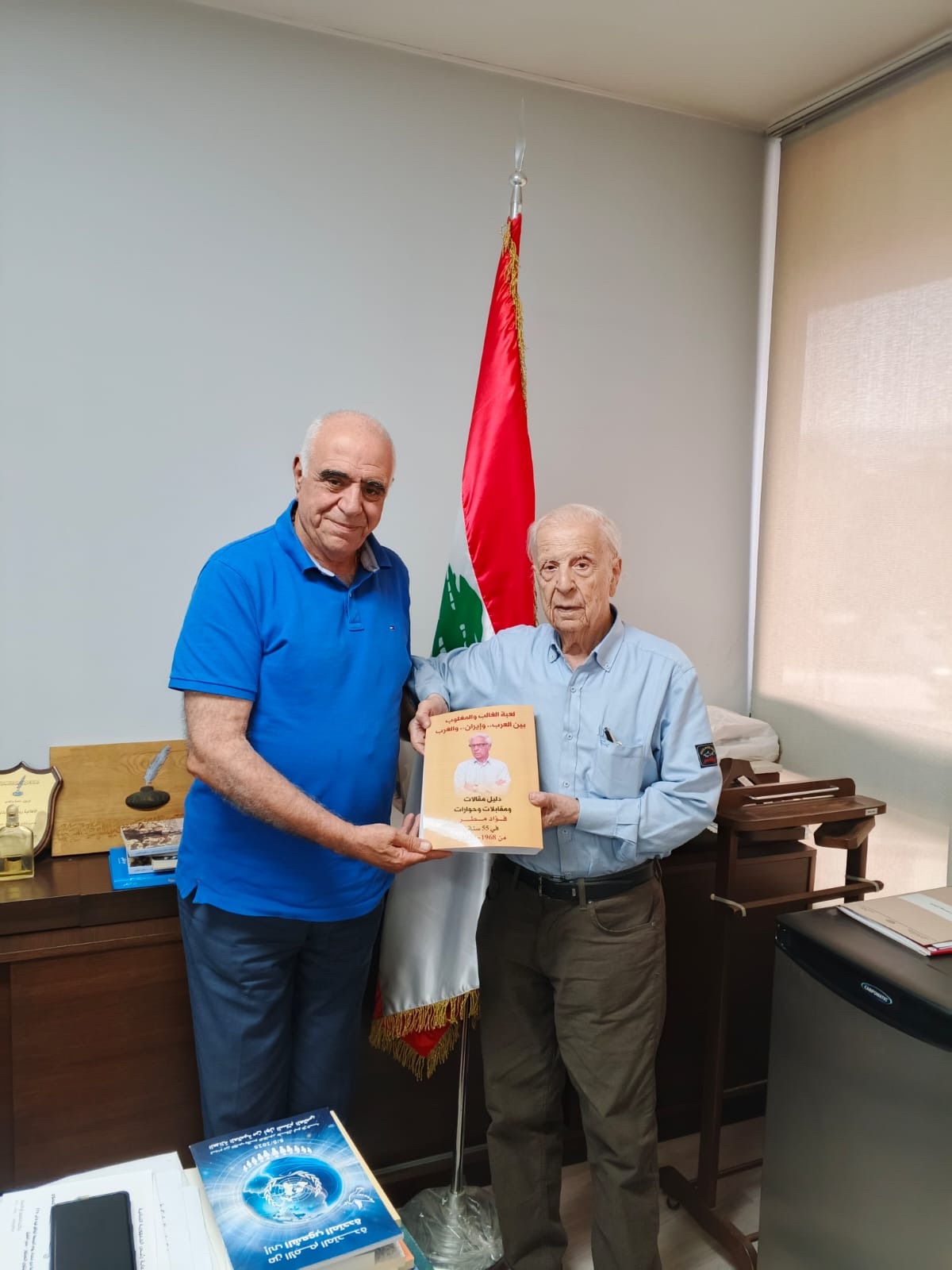 استقبل نقيب محرري الصحافة اللبنانية جوزيف القصيفي الصحافي والكاتب فؤاد مطر الذي قدم له كتابه الجديد، بعنوان: «لعبة الغالب والمطلوب بين العرب... وايران ... والغرب»، وهو دليل مقالات ومقابلات وحوارات أجراها طوال خمسة وخمسين سنة من عمله في المهنة (1968 ـ 2023).