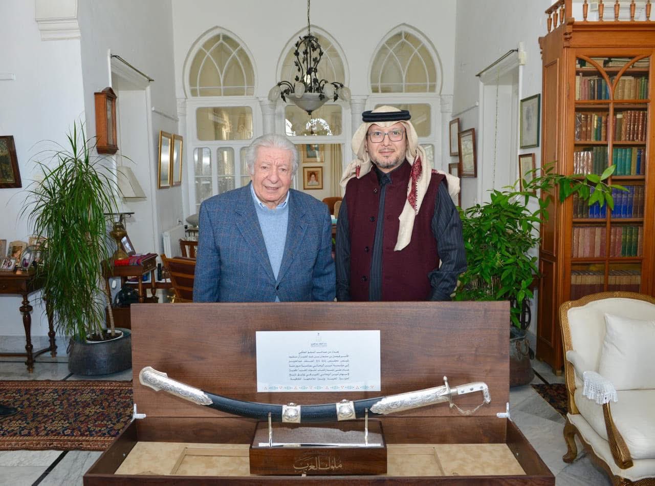 نشر السفير السعودي لدى لبنان الدكتور وليد بخاري على منصة "اكس": تشرفت بتقديم السيف المُهدى من صاحب السمو الملكي الأمير فيصل بن سلمان بن عبدالعزيز آل سعود،رئيس مجلس إدارة #دارة_الملك_عبدالعزيز إلى أُسرة #أمين_الريحاني، الذي أثرى الأدب العربي بإبداعه، بمناسبة مئوية كتاب #ملوك_العرب.