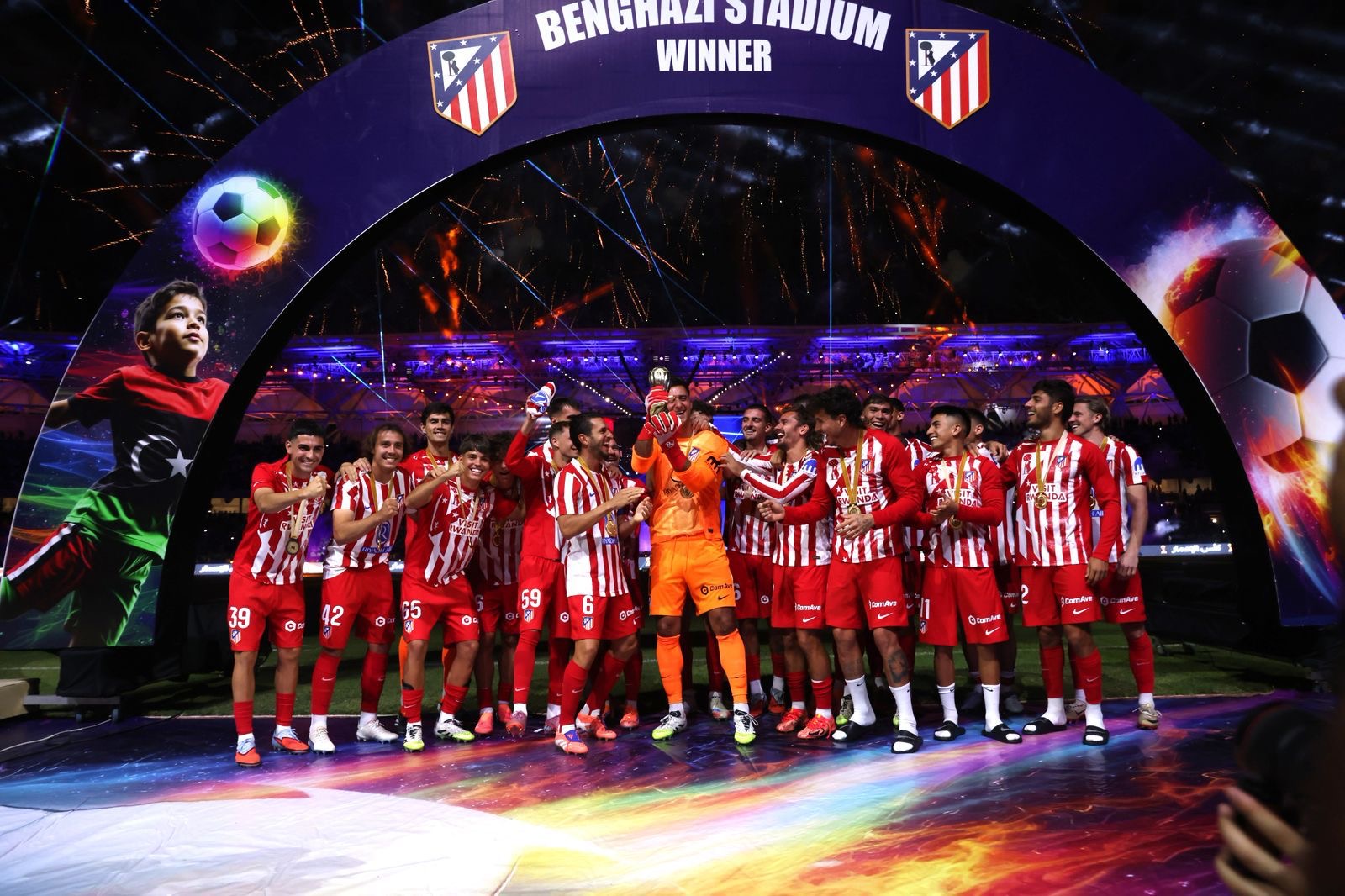 واختُتمت الليلة باحتفال مهيب، حيث تُوّج أتلتيكو مدريد بالكأس وسط عرض مبهر للألعاب النارية أضاء سماء بنغازي، في لحظة رمزية حملت رسالة واضحة للعالم بأن ليبيا قادرة على تنظيم كبرى الفعاليات الرياضية بحرفية وتميّز.