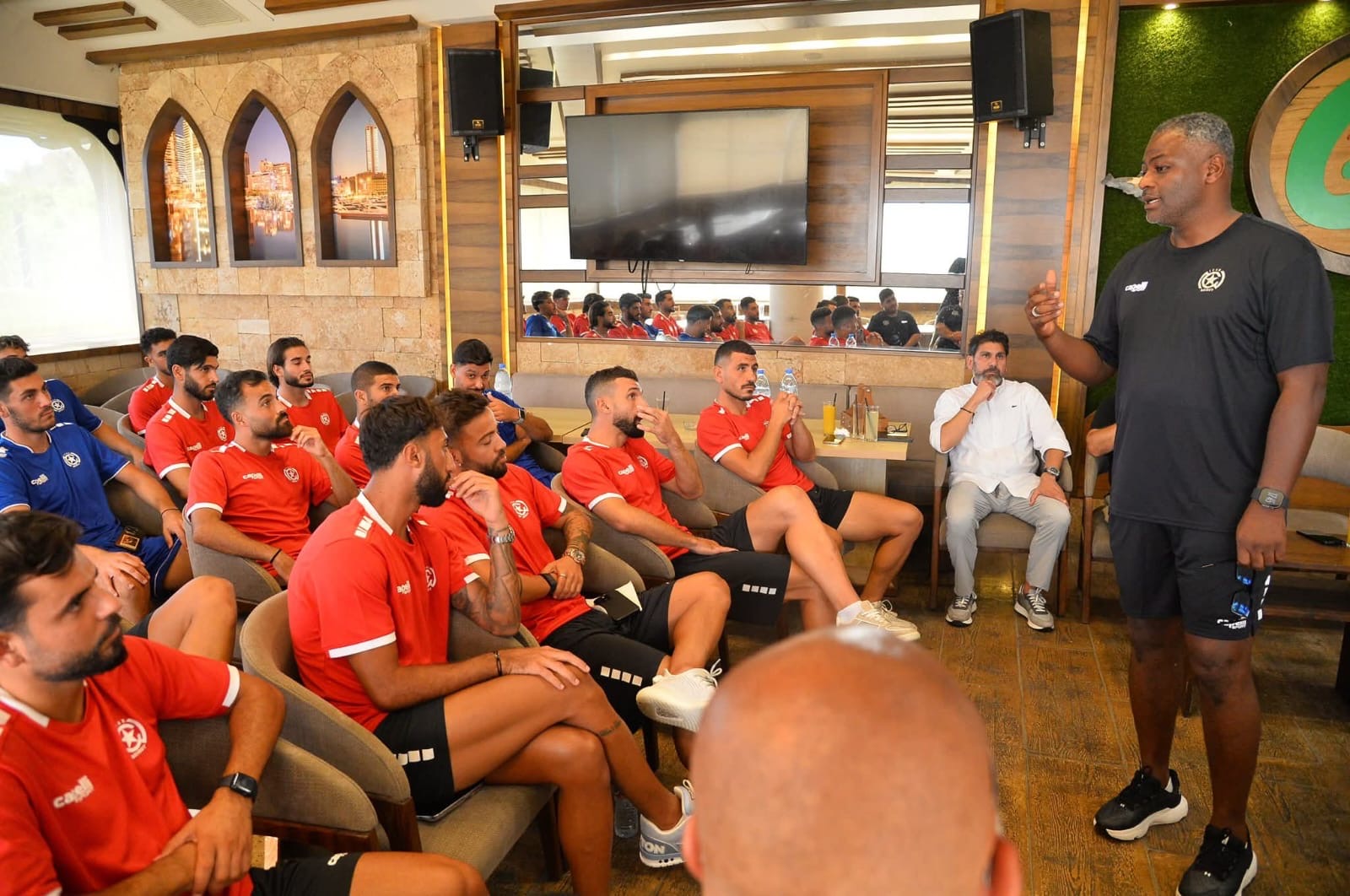 استُهلّ اللقاء بكلمة من مدير الألعاب في النادي باسم محمد، قدّم خلالها الجهاز الفني بقيادة المدرب راضي الجعايدي إلى اللاعبين، بعدها ألقى الرئيس التنفيذي كلمة عبّر فيها عن سعادته بالتواجد مع الفريق، معدداً أسس العمل التي يعتبرها قاعدة لانطلاق بناء فريق فائز، وأبرزها: الانضباط في المواعيد، الاحترام المتبادل بين جميع أفراد الفريق، توفير بيئة خالية من أي شكل من أشكال التنمر، اللعب بروح عالية والتضحية من أجل الشعار.