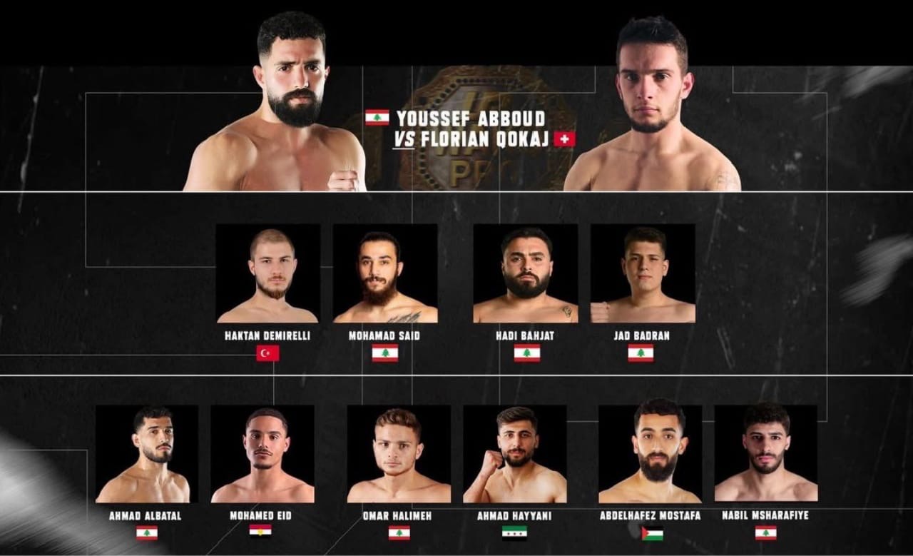 وسيشهد مساء السبت 11 نزالاً في أمسية رياضية قتالية بامتياز بمشاركة لاعبين محترفين من ايطاليا ولبنان وسوريا وفلسطين والكويت والجزائر والامارات العربية المتحدة والعراق والأردن ومصر والمغرب.