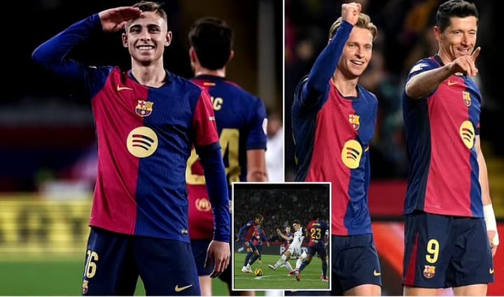 وحسم برشلونة اللقاء في الشوط الاول بخماسية تناوب عليها القائد الهولندي فرنكي دي يونغ (د 3) وفيران توريس (8) والبرازيلي رافينيا (14) وفيرمين لوبيز (24 و45+4)، قبل أن يضيف الثاني البديل البولندي روبرت ليفاندوفسكي السادس (66) وسيسار تاريغا السابع عن طريق الخطأ في مرمى فريقه (75)، وسجل هوغو دورو هدف فالنسيا الوحيد (59).
