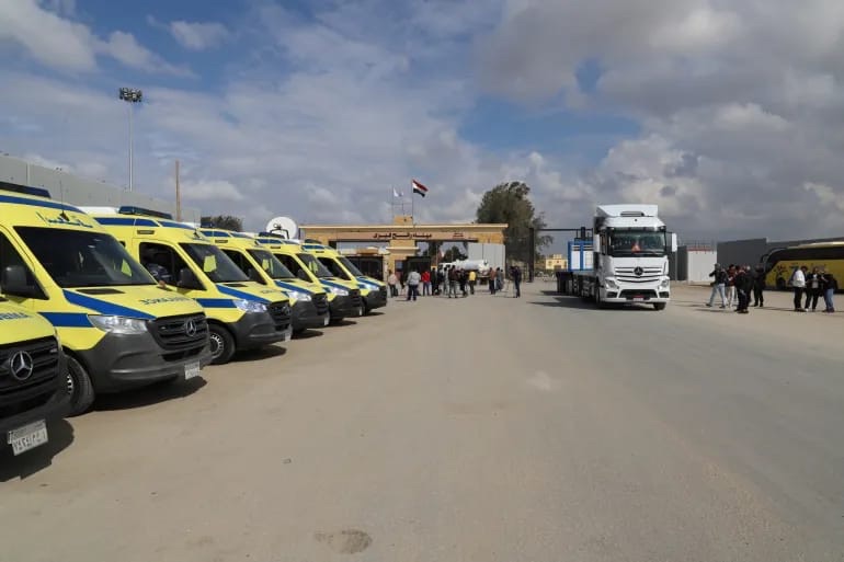 في الأثناء، اصطفت عشرات الشاحنات والمعدات الثقيلة من بينها جرافات على الجانب المصري من معبر رفح الحدودي تمهيدا لدخولها إلى غزة، حسبما ذكر تلفزيون مصري رسمي.