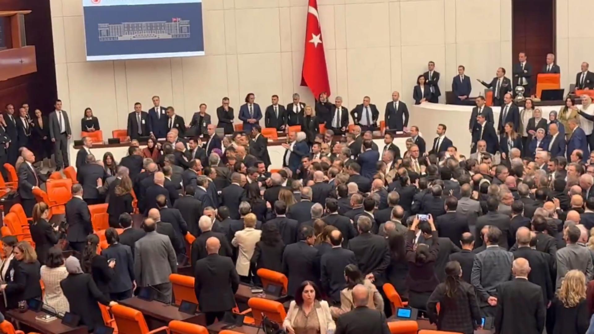 وقع إشكال عنيف في قاعة البرلمان التركي لدى الاستعداد للتصويت على ميزانية 2026 بعد اكتمال المناقشات حيث تبادل النواب الضربات، ما دفع رئيس المجلس نورمان كورتولموش إلى تعليق الجلسة.