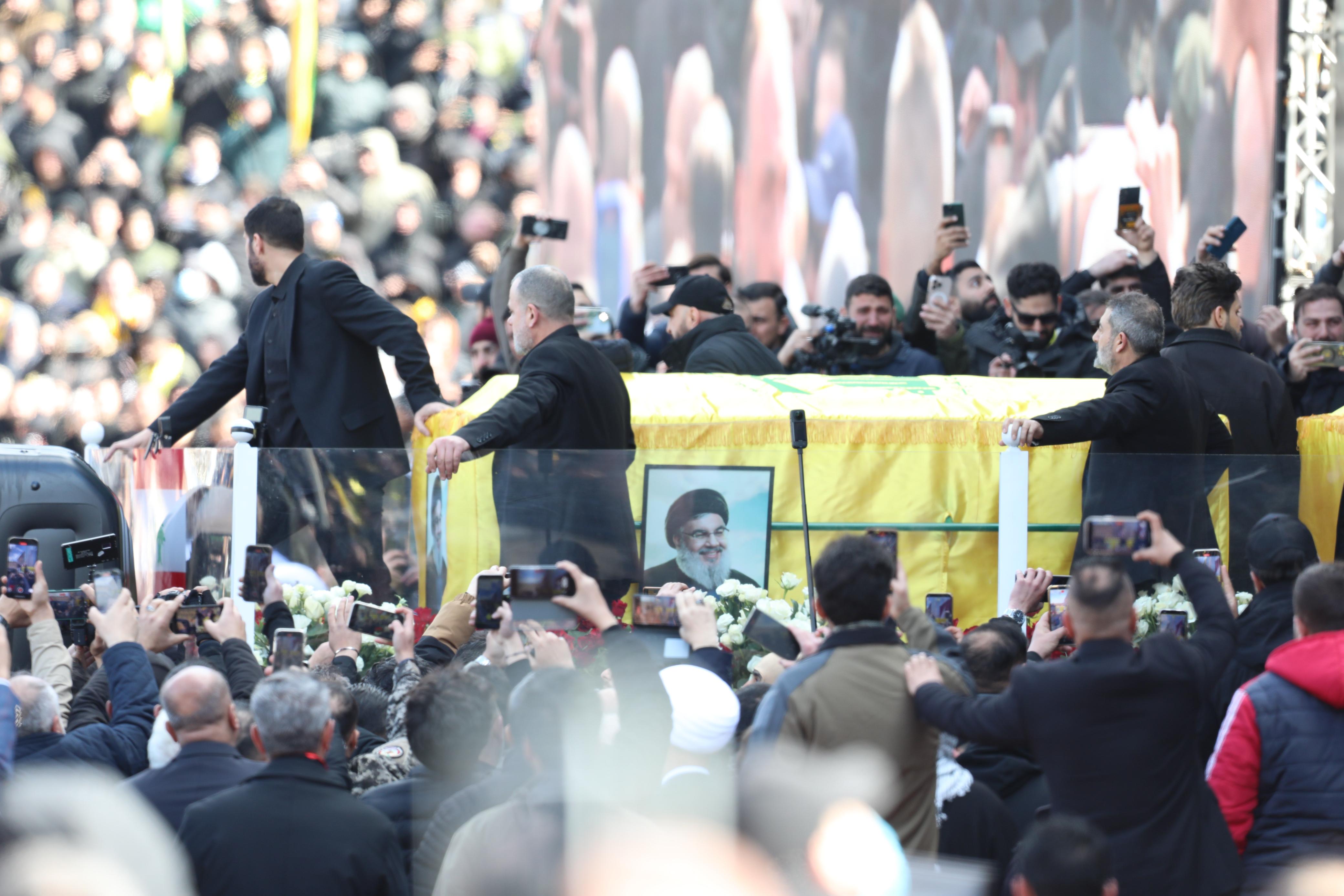 وبالرغم من المكابرة الايرانية، ومحاولات قيادات الحزب، التغطية بحشد ضخم لمؤيدي الحزب وجمهوره في مناسبة تشييع نصرالله وصفي الدين، على ما اصبح عليه الحزب حاليا،لا يمكن إنكار وقائع نافرة رافقت مراسم التشييع، منها، امتناع مشاركة العديد من القيادات والقوى والاطراف السياسة والدينية البارزة، وغياب التمثيل العربي باستثناء وفد عراقي ووفد حوثي. وهناك ايضا تأخير الحزب تشييع الجنازتين لاكثر من خمسة أشهر بسبب رفض إسرائيل لذلك، في حين ترددت معلومات بأن احدى الدول العربية توسطت لدى الحكومة الإسرائيلية، للسماح للحزب باتمام مراسم التشييع من دون عرقلتها او تعطيلها، وقد استجابت لذلك، وثانيا تحليق الطيران الحربي الإسرائيلي فوق موقع التشييع، بشكل استفزازي واضح للجميع من دون استثناء، وتنفيذ سلسلة غارات وقصف لمواقع متبقية للحزب جنوبا وبقاعا.